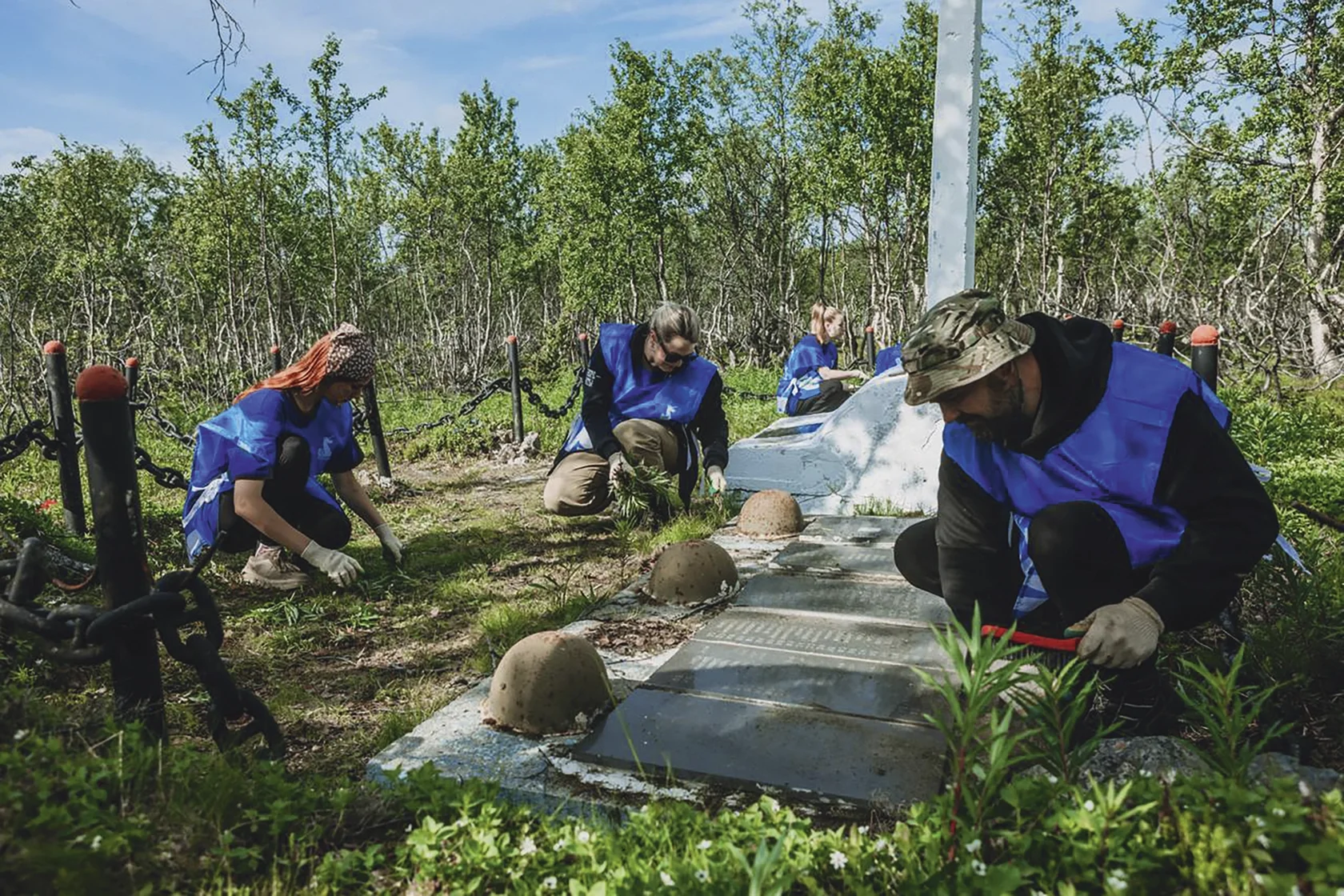 — Действительно, мы решили, что на 80‑летие Победы займёмся в арктической зоне, где шли боевые действия во время Великой Отечественной войны, обустройством братских могил. Большое внимание мы уделяем Мурманской области, единственной, где в течение всей войны граница фактически не сдвинулась ни в одну, ни в другую сторону. Шли позиционные бои, пока не началось наше наступление. Поэтому там очень много захоронений. Несмотря на то, что в регионе многое делается для приведения их в порядок, нам работы тоже хватает. На первом этапе мы убрали много захоронений в самых труднодоступных местах. Наши волонтёры набирают с собой цемент, краску, инструменты и на километры уходят в тундру: приводят в порядок могилы, памятники. Сейчас в Мурманске у нас начнётся второй этап.